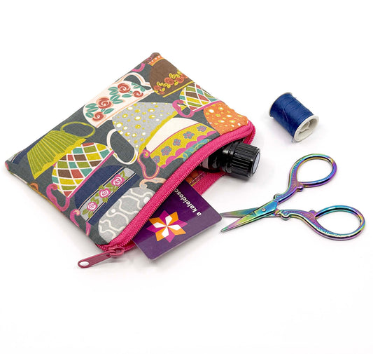 Small Coin Purse, Mini Pouch - Teapot and Coffee Carafe