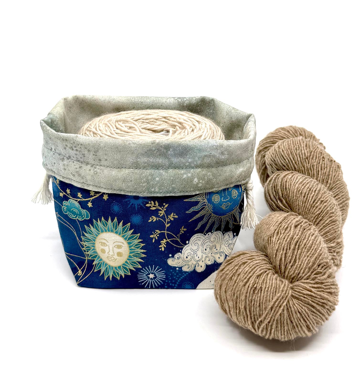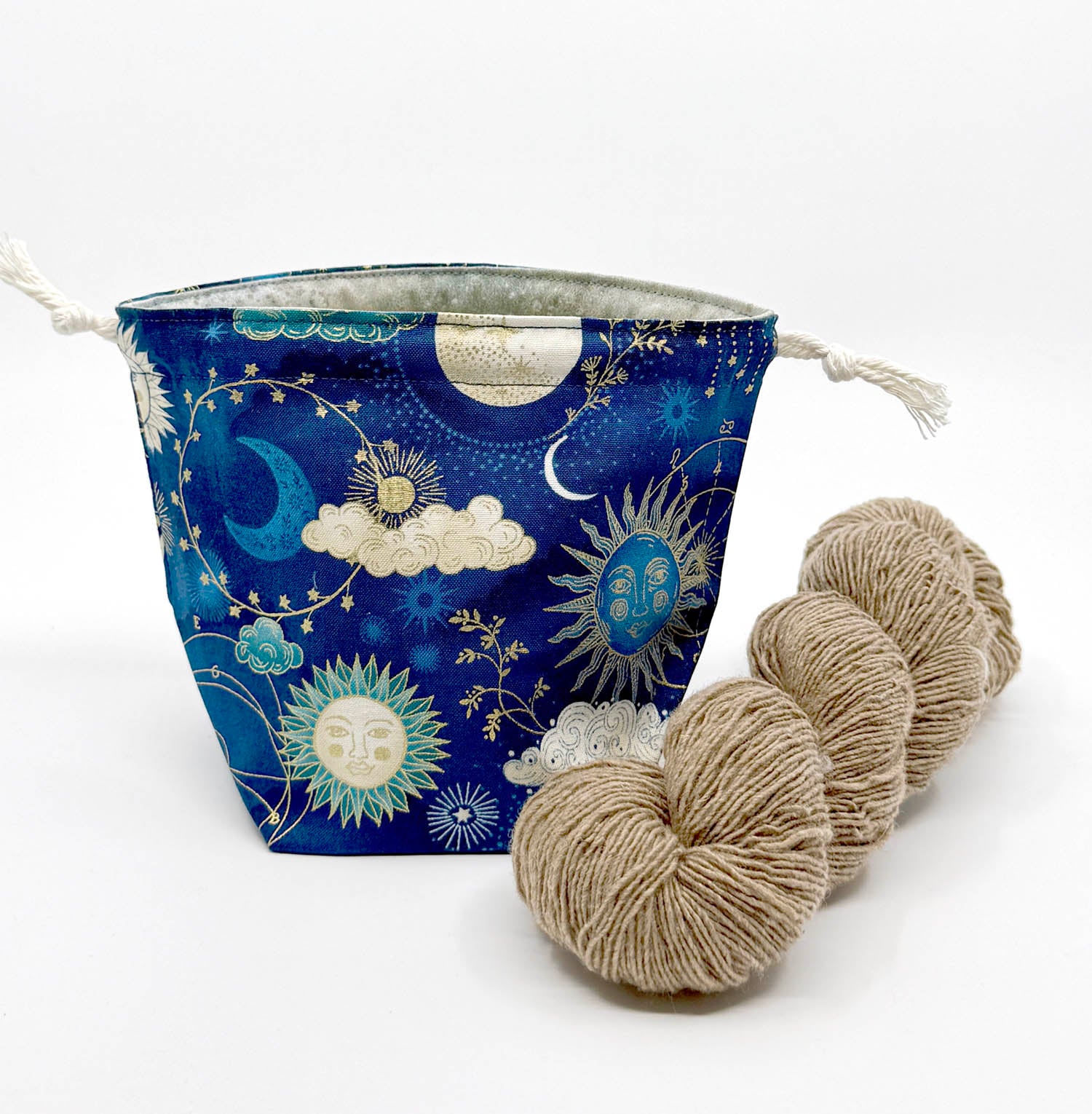 Small Drawstring Bag | Fabric Yarn Bowl - Blue Celestial