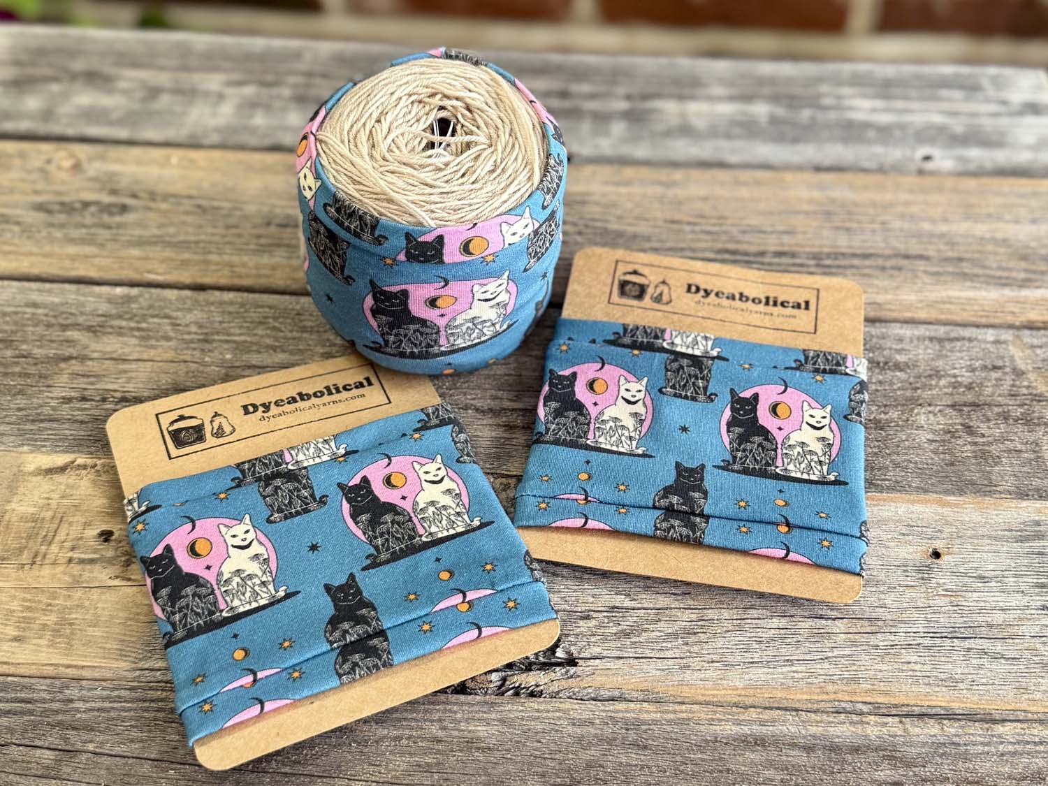 This stretchy yarn sleeve is like a sock for your yarn. It keeps center pull yarn cakes or yarn balls contained while you work your way through the project.