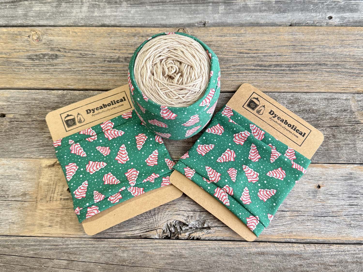 This stretchy yarn sleeve is like a sock for your yarn. It keeps center pull yarn cakes or yarn balls contained while you work your way through the project.