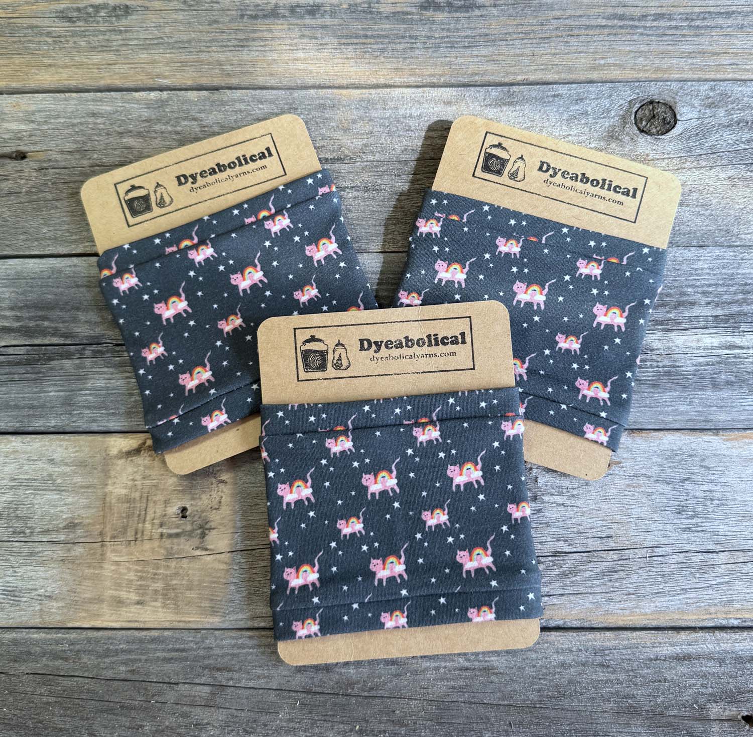 This stretchy yarn sleeve is like a sock for your yarn. It keeps center pull yarn cakes or yarn balls contained while you work your way through the project.
