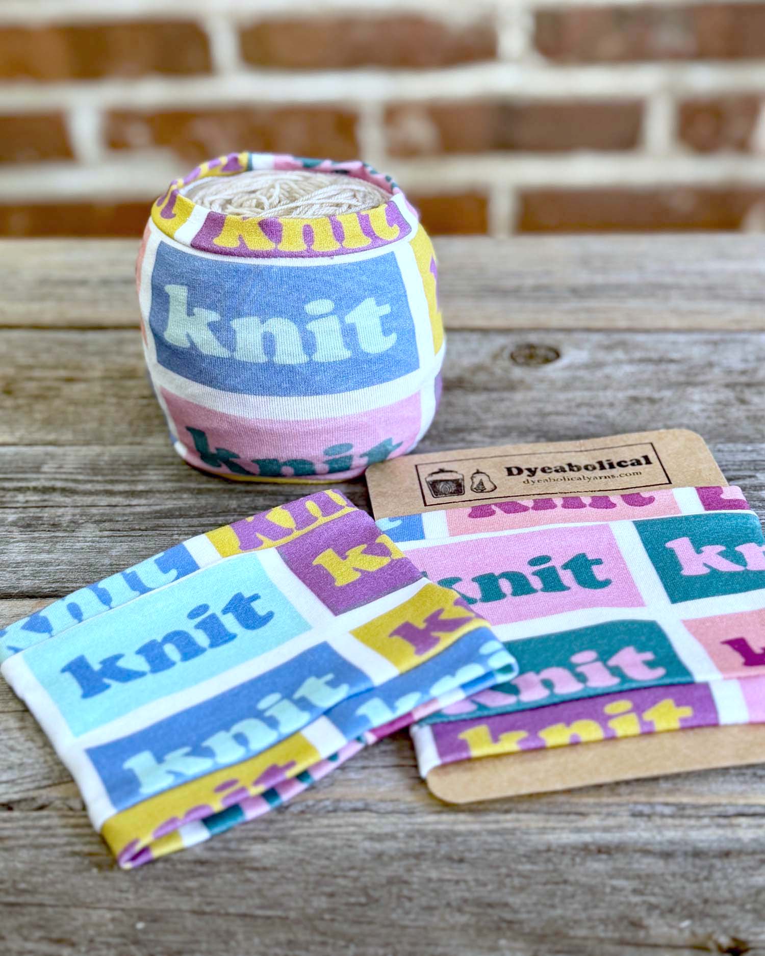 To use: Slide the yarn sock over your hand and grab the top of the cake. Slide the yarn sleeve down over the yarn.
