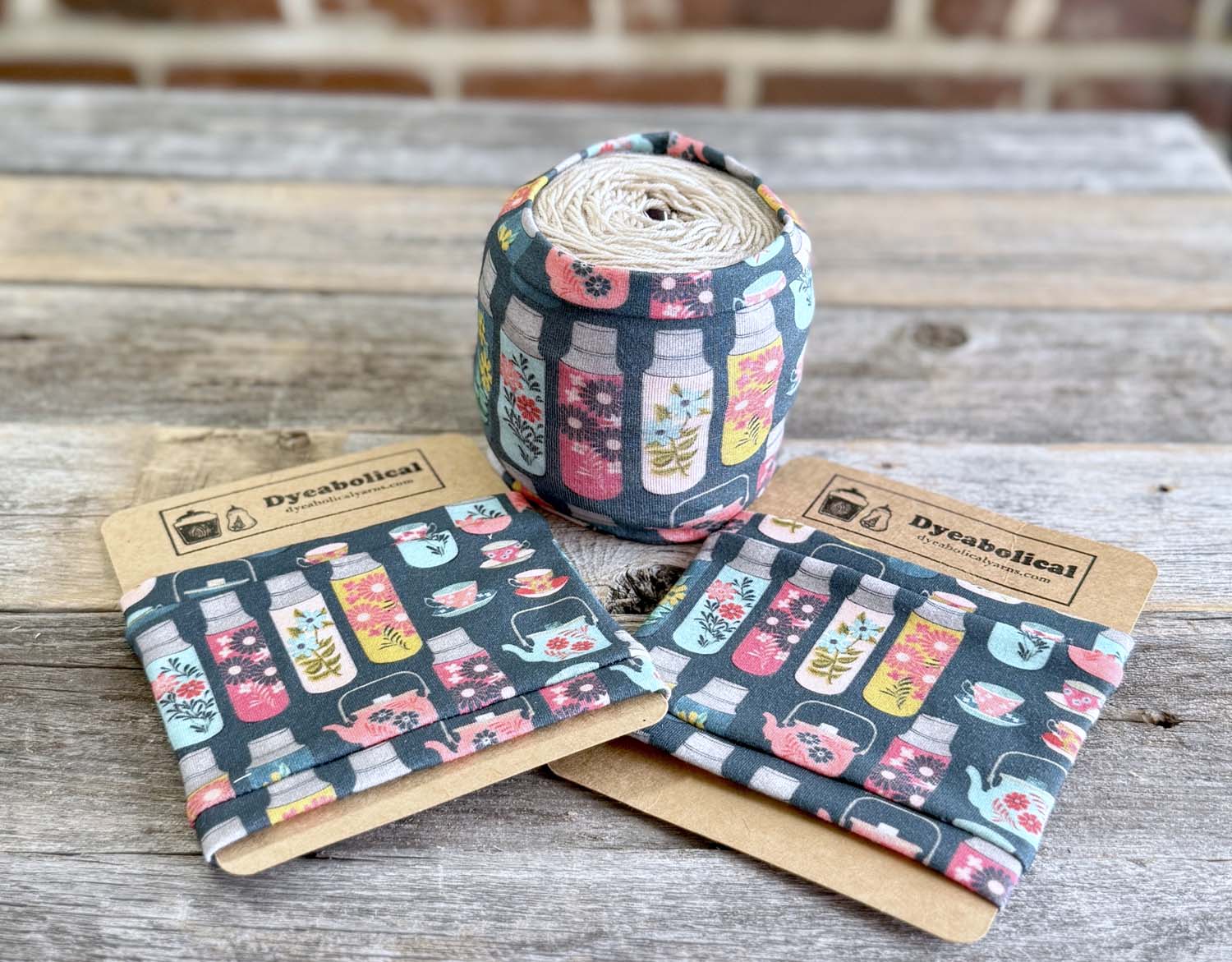 To use: Slide the yarn sock over your hand and grab the top of the cake. Slide the yarn sleeve down over the yarn.